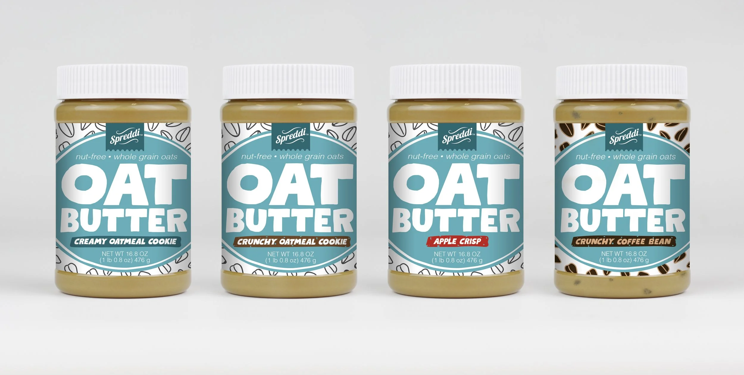 For this peanut butter alternative brand, I designed the logo as well as packaging. The goal of these designs were to immediately distinguish it as a peanut butter alternative both with a large typeface proclaiming its oat ingredients as well as employing a fun visual pattern representation. Care was also given to select a color palette that would easily differentiate from competitors on the shelf.