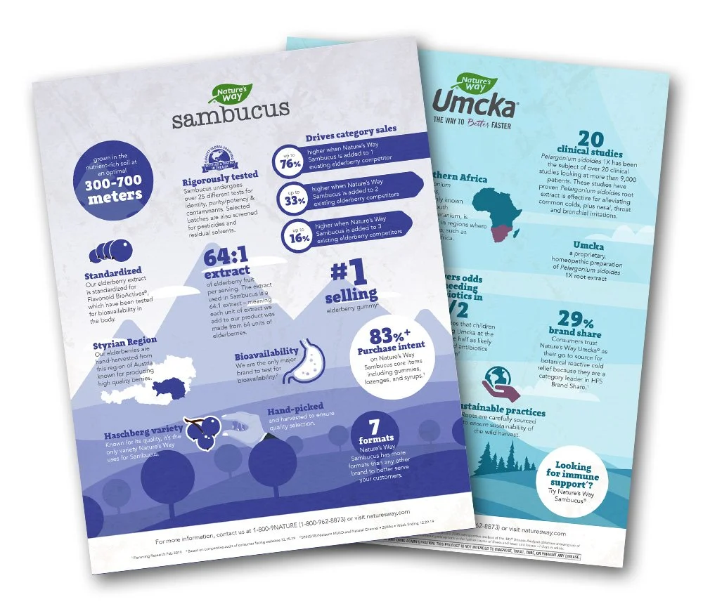 These infographics were created to be used as key sales tools for the Nature’s Way retail sales teams. I handled creative direction and design for these pieces.